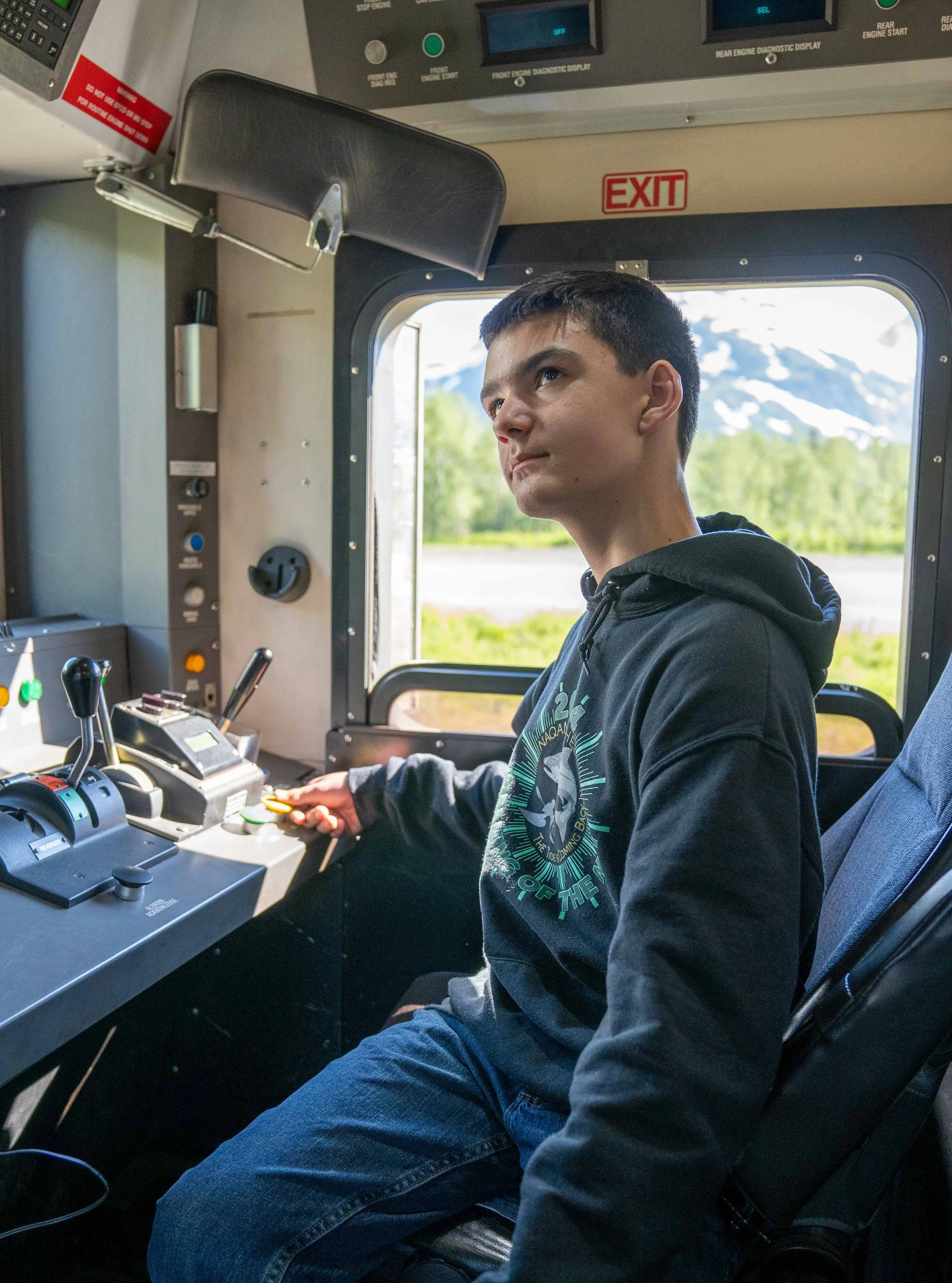 Zandyr loves trains and boats, and his adventure was the perfect blend of both! With the assistance of our family coordinator, Zandyr and his family began their day by boarding the iconic Alaska Railroad train, journeying through the stunning wilderness all the way to Spencer Glacier. At the stop, they joined Chugach Adventures for an unforgettable rafting experience. Thanks to the rafting guides, Zandyr was able to touch and feel the glacier ice. It was a day filled with memories that Zandyr and his family will treasure forever.